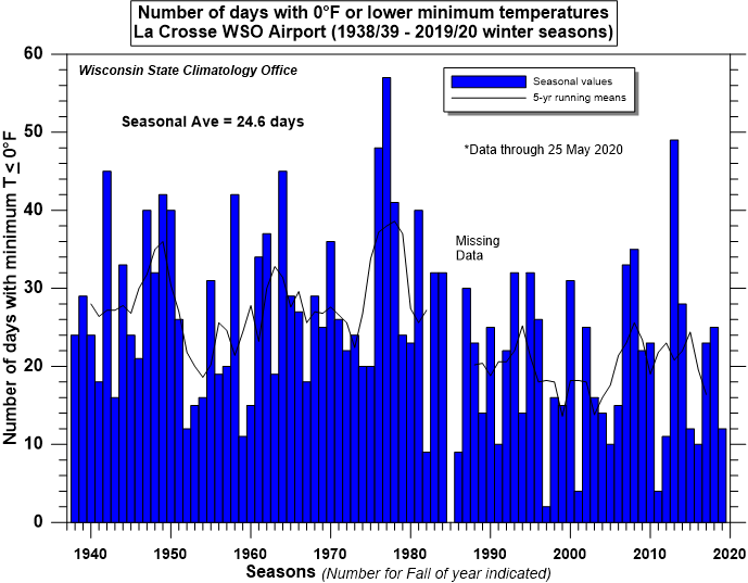 - Frequency of occurrence of a White Christmas (1 inch or more of snow cover at 6 am on 25 December) at the La Crosse Airport (1951-2020)