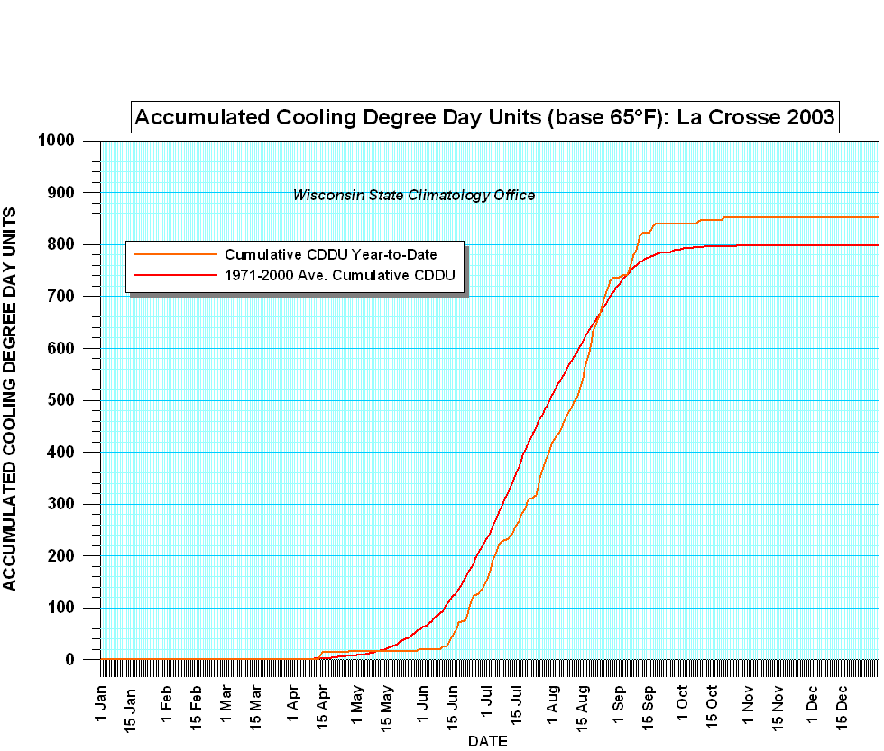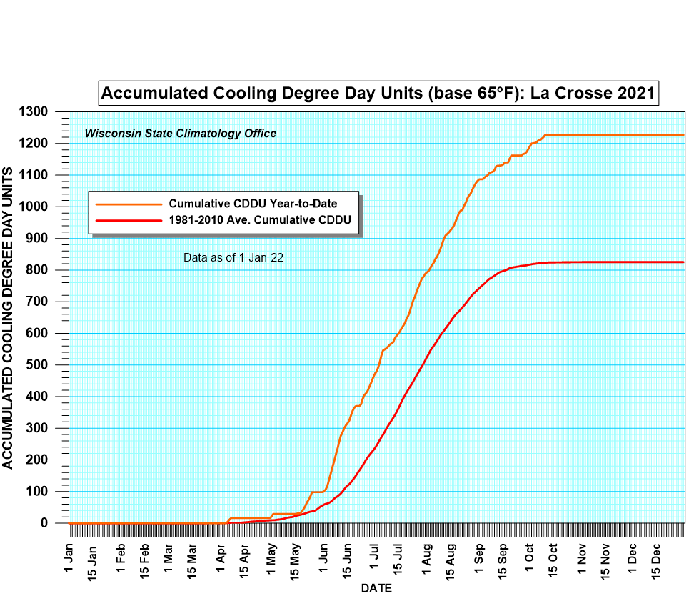 Cooling Degree Days (base 65°F; season runs 1 January - 31 December)