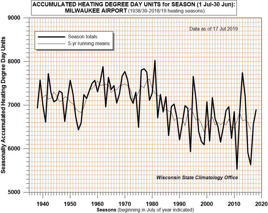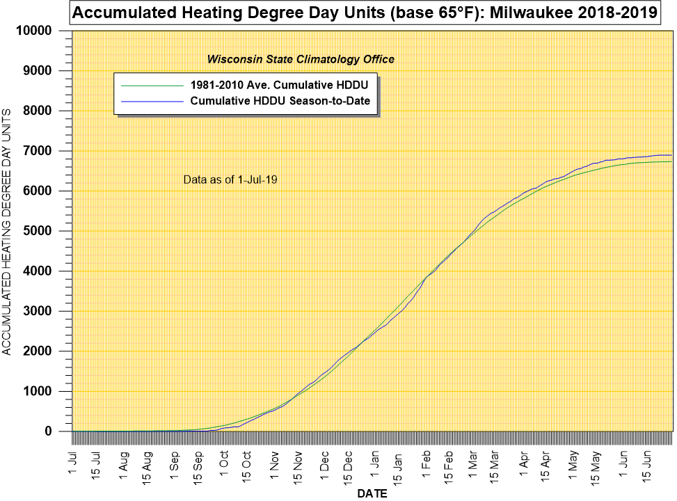 Heating Degree Days (base 65°F; season runs 1 July - 30 June)