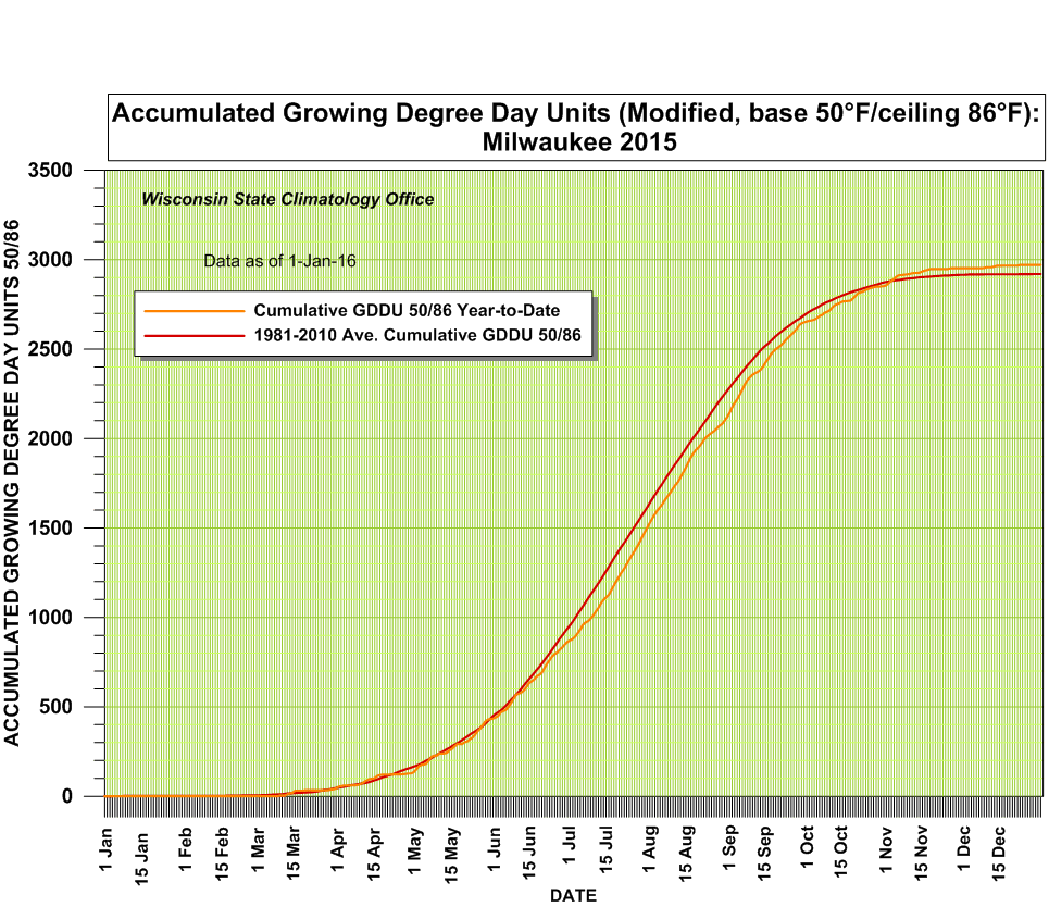- Long-term variations in Modified Growing Degree Day Units