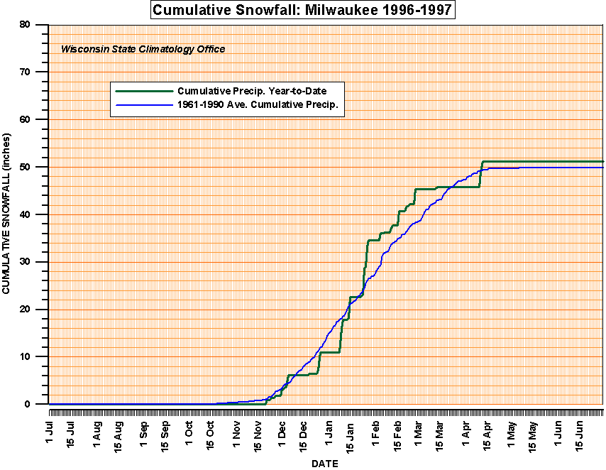 - Greatest daily snowfall total by snow season at Milwaukee